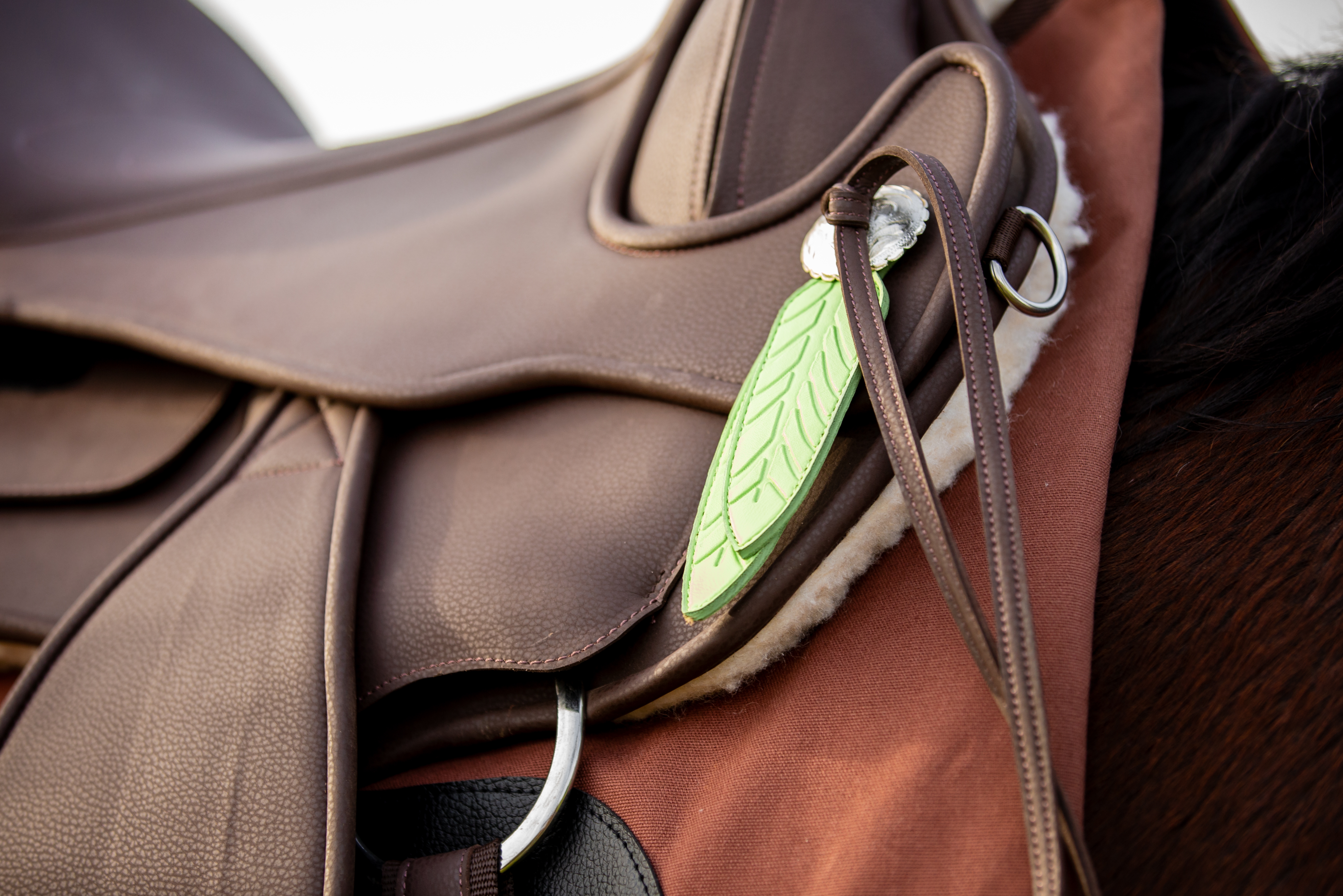 The adjustable Velcro stirrup suspension is attached between the seat and the saddle substructure and is therefore easy to adjust. This means that the saddle can easily be adapted to riders with different leg lengths simply by moving the stirrup suspension either backwards or forwards.