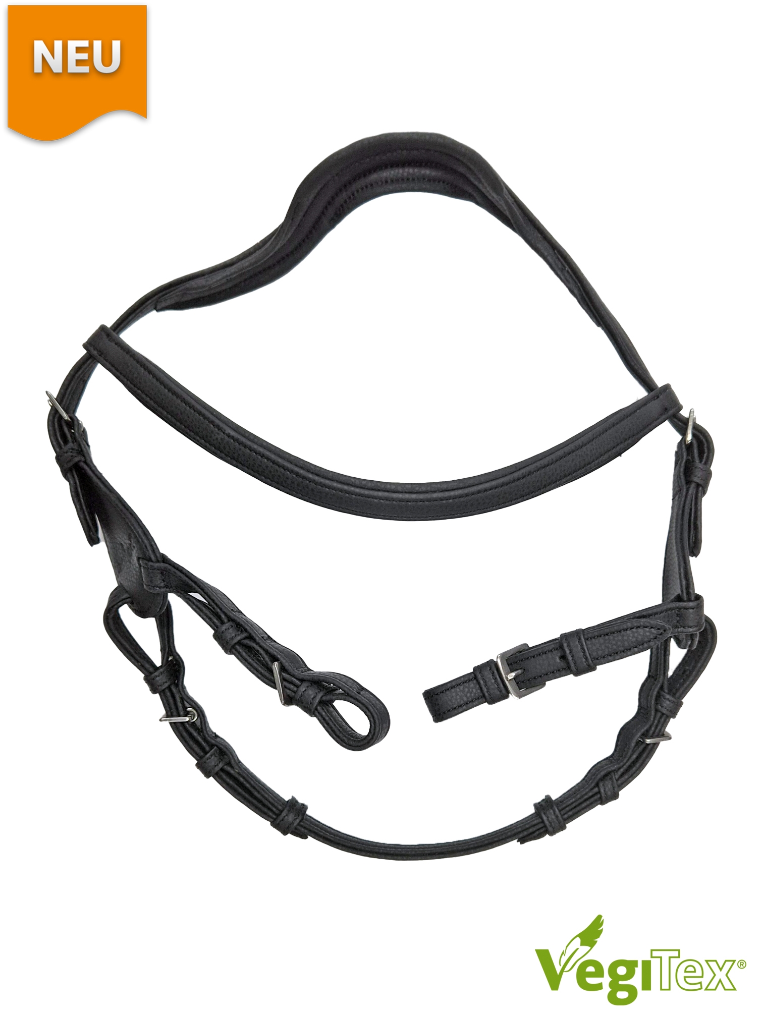 The VegiTex® Contour Physio headstall is delivered without noseband and bit. A matching noseband must be purchased if required.